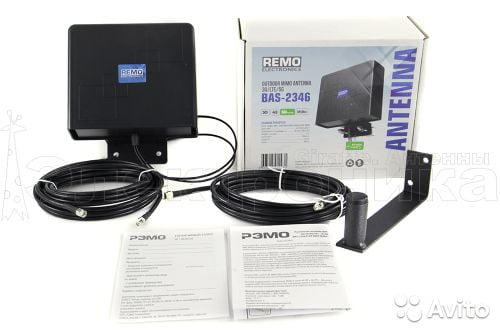 2. Антенна BAS-2346 FLAT-mini MIMO для усиления 2G,3G,4G,5G с кабелями 2 по 5 метров и кронштейном -1шт