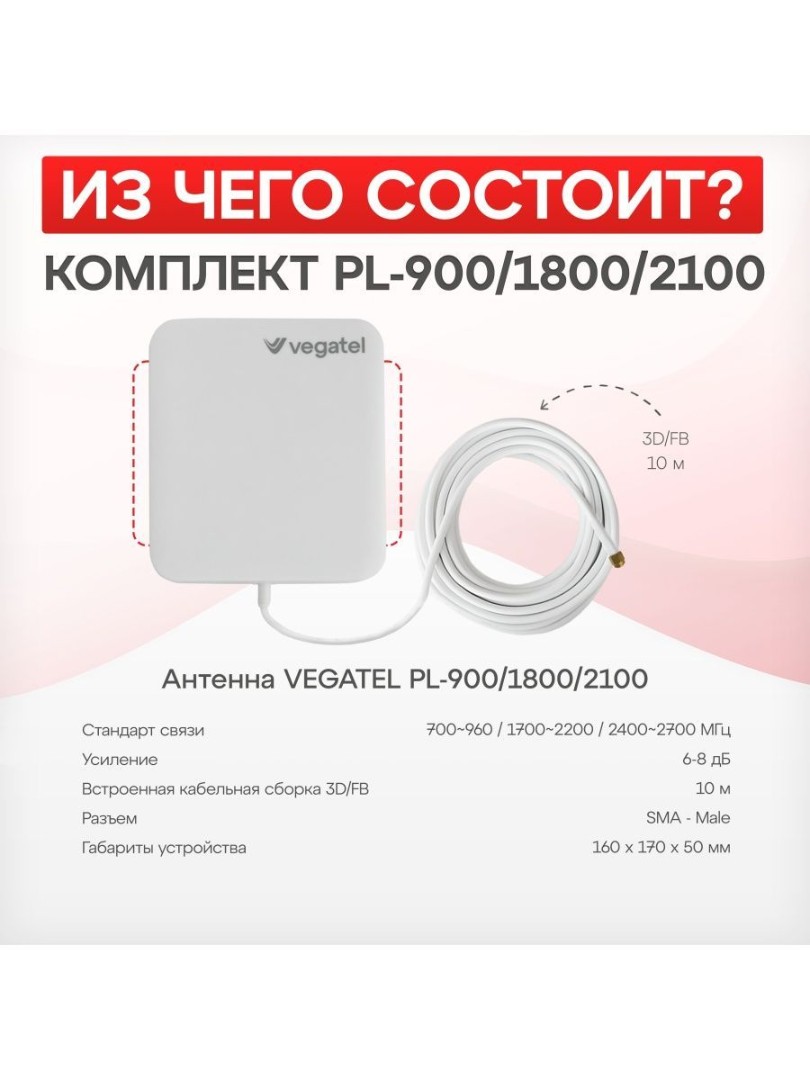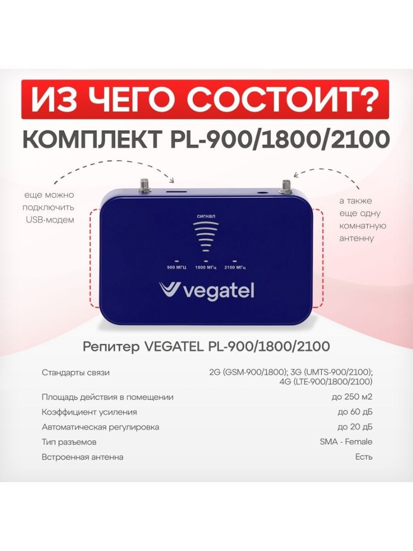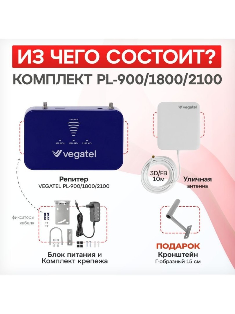 Как быстро и просто усилить сотовую связь? Ответ есть! VEGATEL PL – это лучшее готовое решение, благодаря которому вы сможете наслаждаться безупречной связью на даче, цокольных этажах, строительных обьектах, магазинах . Репитер VEGATEL PL-900/1800/2100 поставляются в виде готового комплекта с уличной антенной.