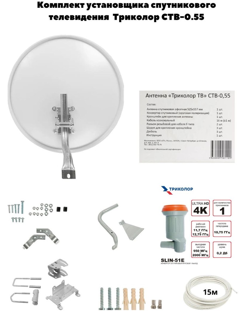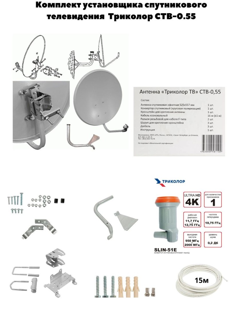 Комплект спутникового ТВ Триколор СТВ-0.55 — полный набор для установки в Минске и Беларуси.