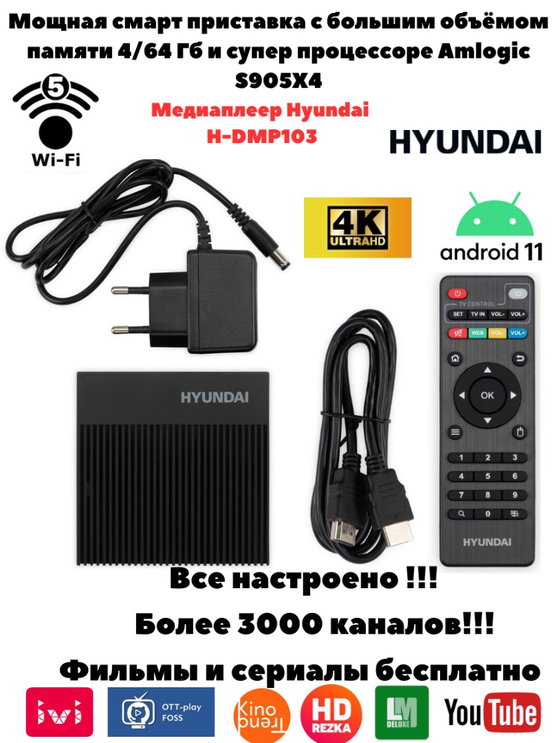 Представляем Hyundai H-DMP103 – смарт ТВ приставку, созданную для тех, кто ценит качество, простоту и мощь. Прошивка Slimbox, разработанная специально для этой модели, обеспечивает невероятную производительность и расширенный функционал, делая просмотр ТВ и контента максимально удобным и увлекательным.