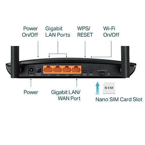 Комплектация: 1. TP-Link Archer MR600 (AC1200, 1xGWAN/GLAN, 3xGLAN, 4G+ LTE Cat6), до 300 Мбит/c;